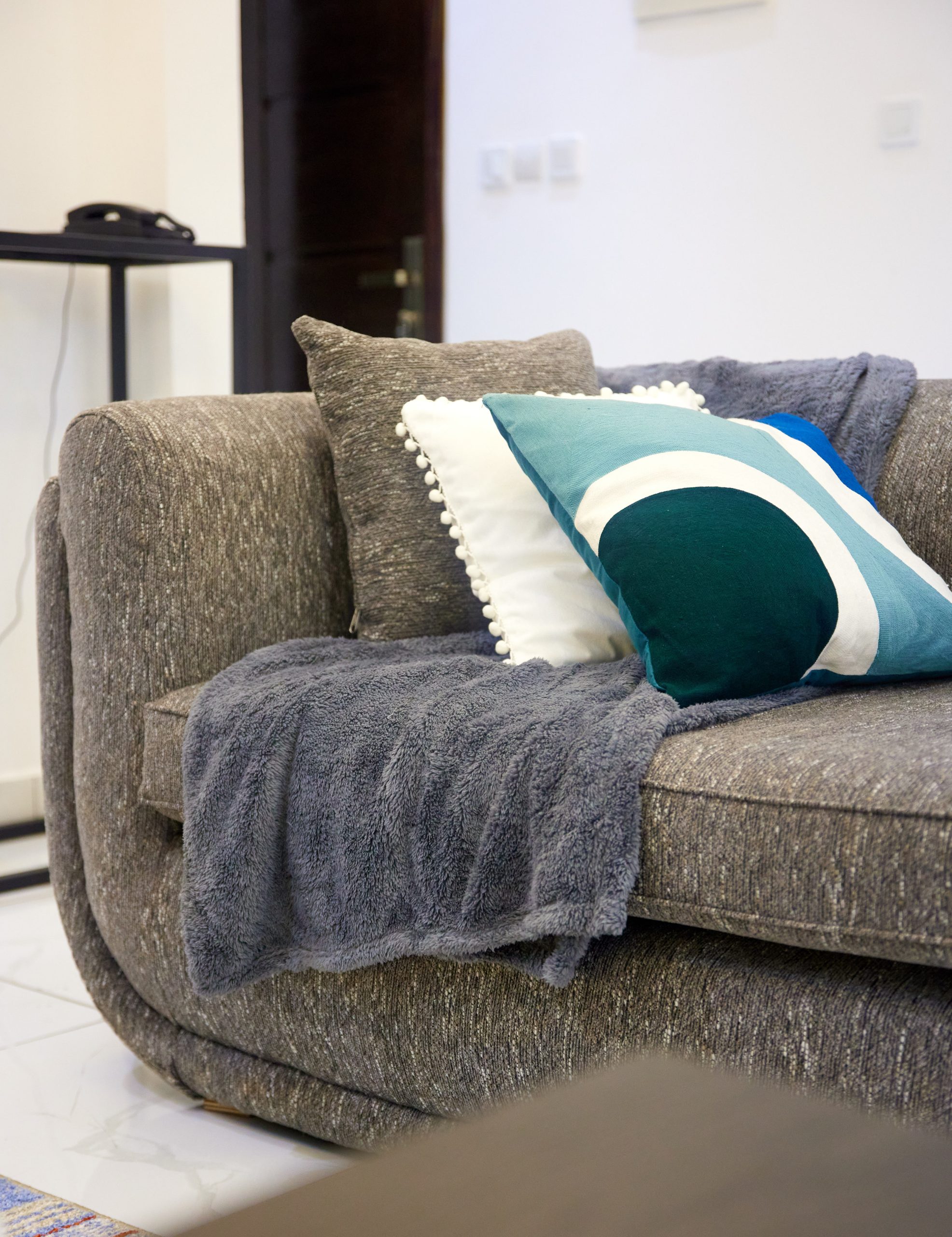 Que ce soit pour lire, échanger ou simplement se détendre, cet espace commun incarne l’esprit d’hospitalité d’AJ3 Luxury Home : un cadre harmonieux où confort, tranquillité et bien-être se rencontrent pour offrir une expérience résidentielle reposante et raffinée.